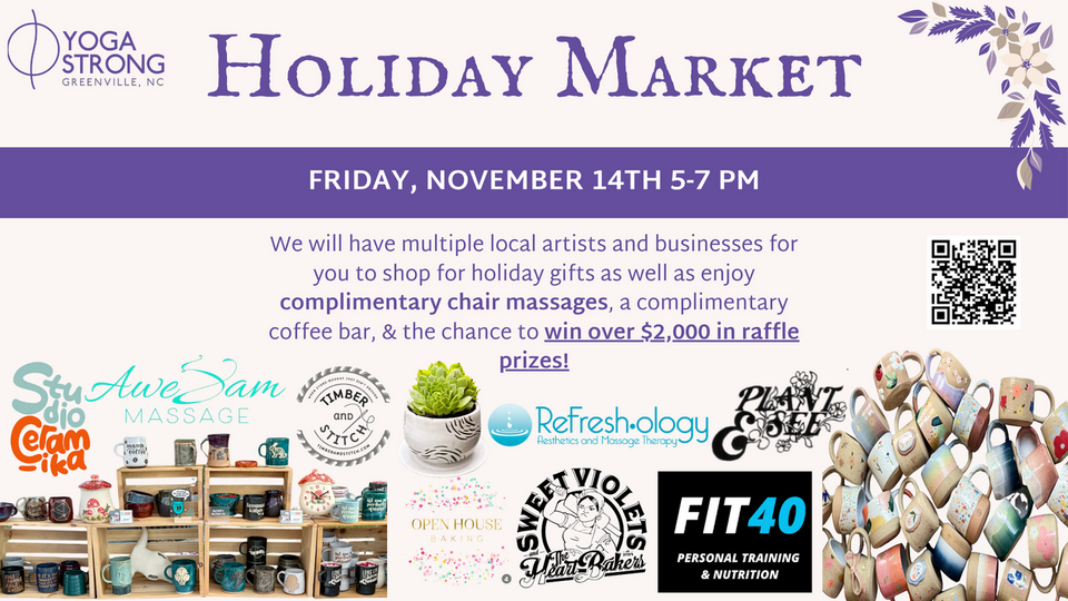 We will have multiple local artists and businesses for you to shop for holiday gifts as well as enjoy complimentary chair massages, a complimentary coffee bar, & the chance to win over $2,000 in raffle prizes from our participating businesses.